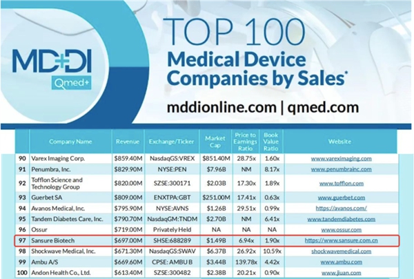 近日,医疗器械行业权威网站Medical Device+Diagnostic Industry(MD+DI)发布了2023年全球医疗器械企业TOP100榜单。PA电子生物连续两年上榜全球百强,也是此次榜单唯二主营业务是体外诊断的中国企业。